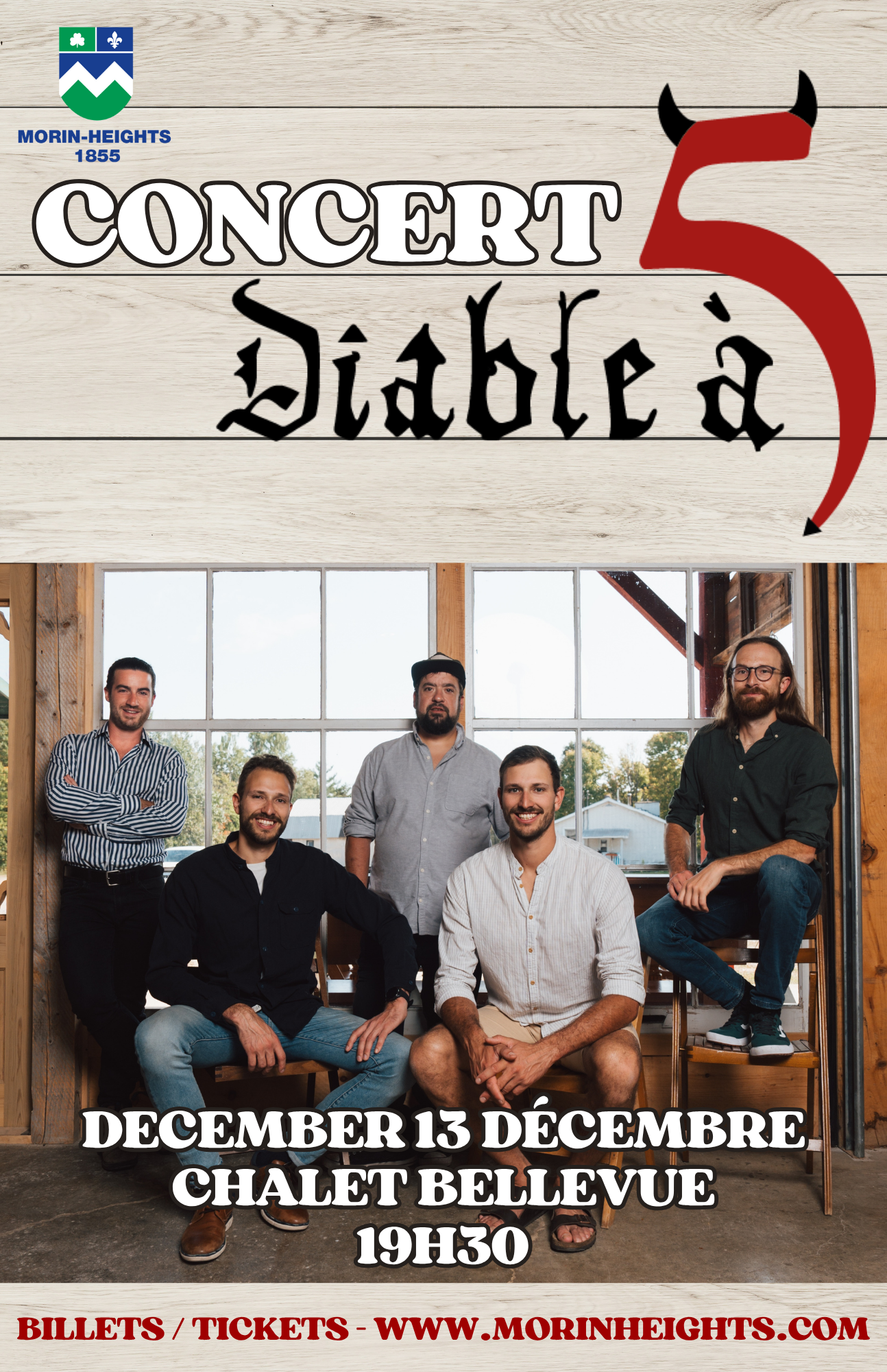 Le Diable à Cinq is a powerful traditional music group made up of five multi-instrumentalists and singers from Ripon, in the Outaouais region, whose mission is to bring back to life the festive evenings in which its members grew up. It’s also a family affair, with three brothers, a cousin and a friend sharing the stage with remarkable complicity.